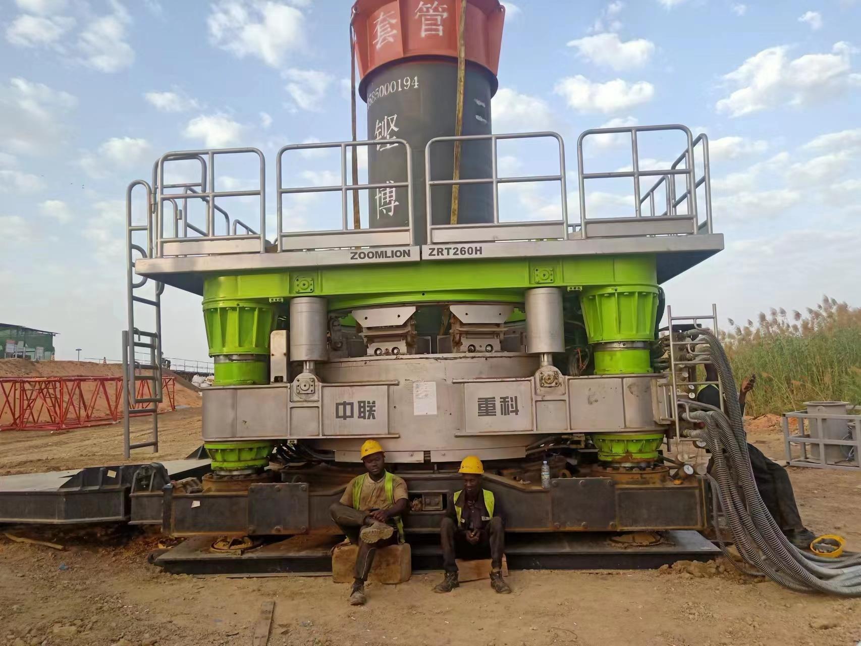 自設(shè)備今年2月進(jìn)場(chǎng)以來(lái),中聯(lián)重科服務(wù)團(tuán)隊(duì)迅速完成了對(duì)當(dāng)?shù)厥┕と藛T的操作培訓(xùn),確保非洲工人能熟練使用全回轉(zhuǎn)鉆機(jī)?!胺侵尥菩械臍W標(biāo)禁止使用化學(xué)泥漿,全護(hù)筒工藝在這里用的很多,這次使用的全回轉(zhuǎn)鉆機(jī)ZRT260H,應(yīng)客戶要求打了根實(shí)驗(yàn)樁,下了55米護(hù)筒,樁深52米,由履帶吊快放取土成孔。客戶評(píng)價(jià)機(jī)器有勁,施工穩(wěn)定,護(hù)筒下的深,完全符合他們的預(yù)期?!敝新?lián)重科非洲駐點(diǎn)服務(wù)工程師佟兵介紹說(shuō)。