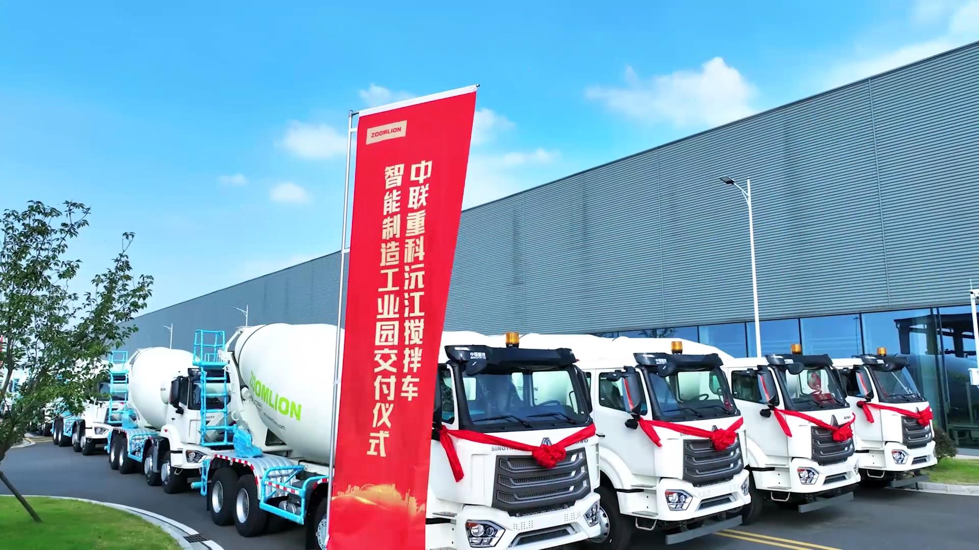 ▲中聯(lián)重科攪拌車批量出口發(fā)車現(xiàn)場