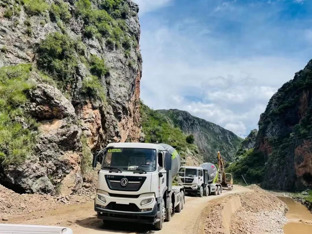 △川藏線上的中聯(lián)重科純電動攪拌車