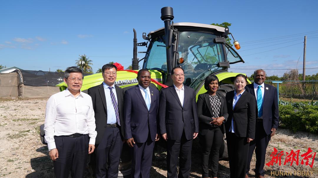 訪問期間,湖南省向巴哈馬農(nóng)業(yè)和海洋資源部捐贈(zèng)農(nóng)機(jī)簽約及交接儀式在巴哈馬首都拿騷成功舉行。此次捐贈(zèng)的設(shè)備包括中聯(lián)重科拖拉機(jī)、旋耕機(jī)等4臺(tái)農(nóng)機(jī),這些設(shè)備將被用于巴哈馬水果、蔬菜和谷物的種植,助力提升當(dāng)?shù)剞r(nóng)業(yè)生產(chǎn)能力。