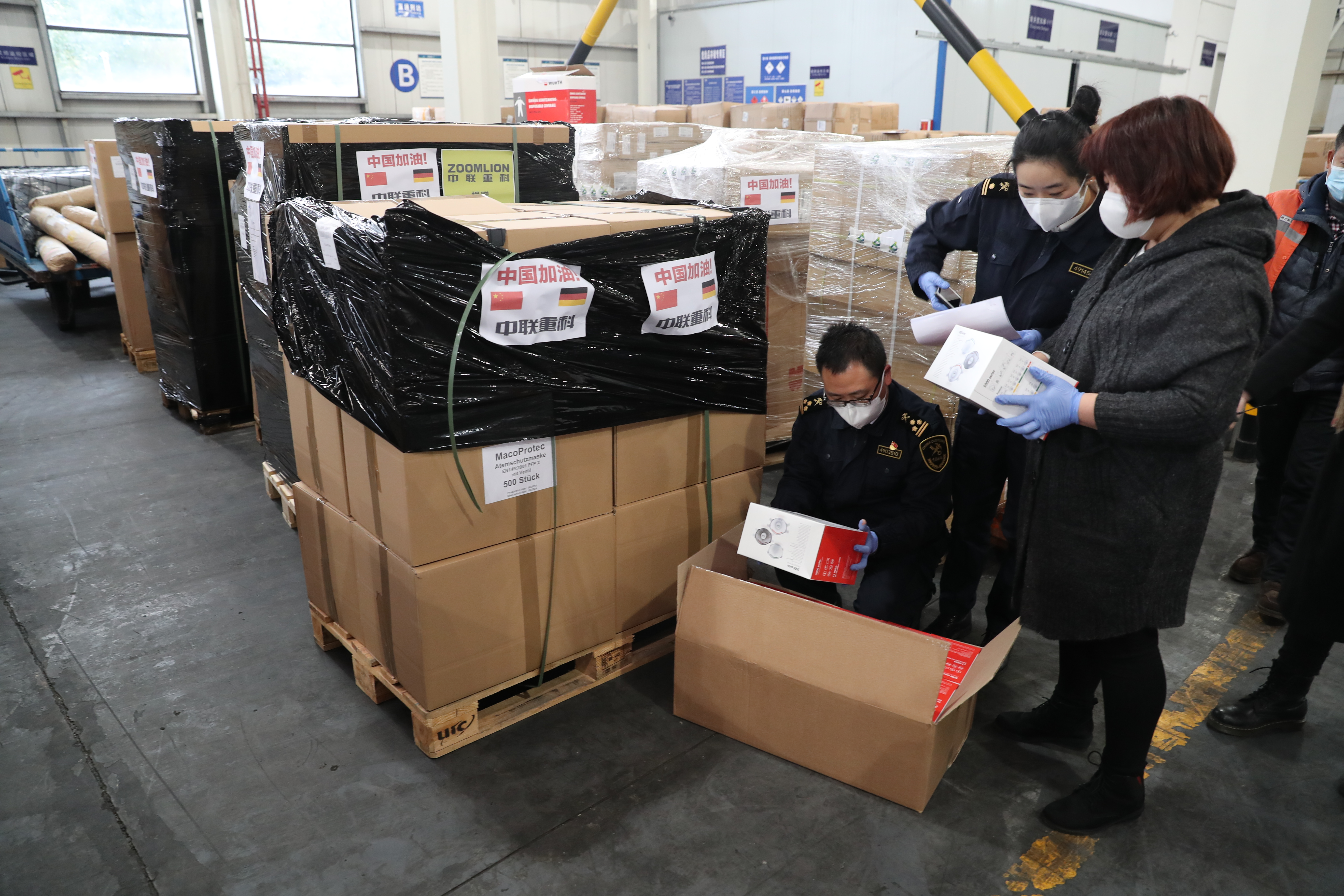 △中聯(lián)重科從德國采購的逾13萬件醫(yī)護(hù)物資抵達(dá)長沙黃花機(jī)場