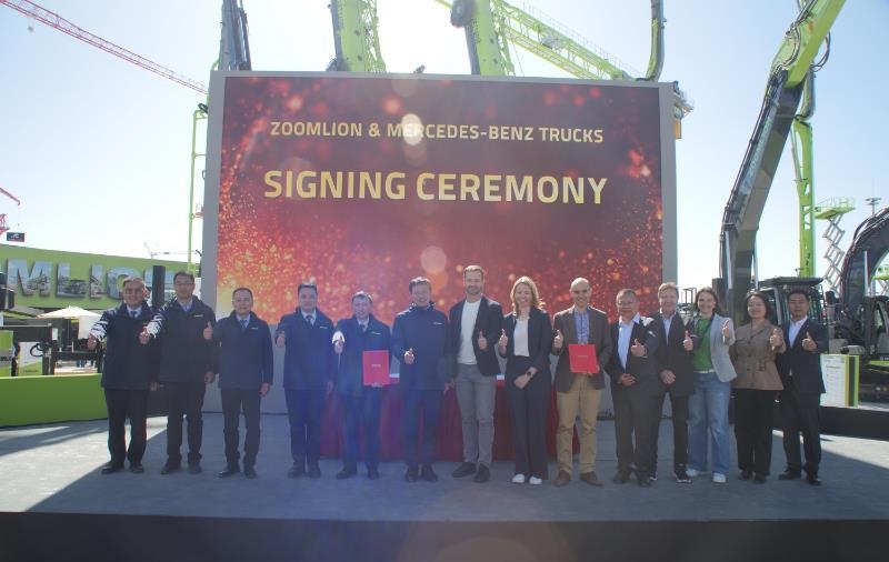 查看詳細 > 當(dāng)?shù)貢r間4月7日,德國寶馬展(bauma 2025)開展首日,中聯(lián)重科與戴姆勒卡車旗下梅賽德斯-奔馳卡車正式簽署全球戰(zhàn)略合作協(xié)議。雙方將圍繞混凝土泵車、攪拌車、消防車等專用底盤領(lǐng)域深化合作,攜手為全球客戶提供更加高效、可靠的整體解決方案。梅賽德斯-奔馳卡車全球CEO 彭程,梅賽德斯-奔馳卡車營銷、銷售及服務(wù)負責(zé)人Stina Fagerman,中聯(lián)重科聯(lián)席總裁王永祥,中聯(lián)重科混凝土機械分公司總經(jīng)理歐陽文志等出席簽約儀式。此次簽約標